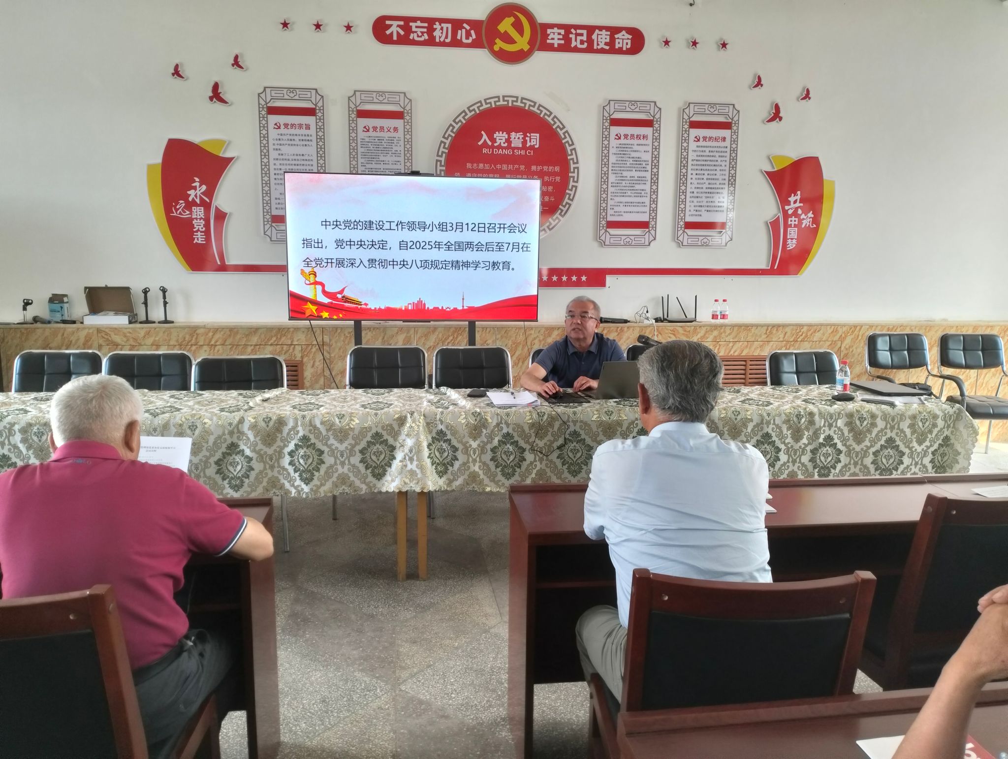 2025 年 5 月 20 日上午,离退休职工管理处党委在高台校区离退休职工会议室精心组织开展专题党课学习活动。离退休职工管理处党委书记、处长卡斯木江・麦麦提依明为离退休职工第一、第二、第三支部的退休教职工党员讲授“深入贯彻中央八项规定精神学习教育”专题党课,进一步强化党员纪律意识,推动全面从严治党向纵深发展。
